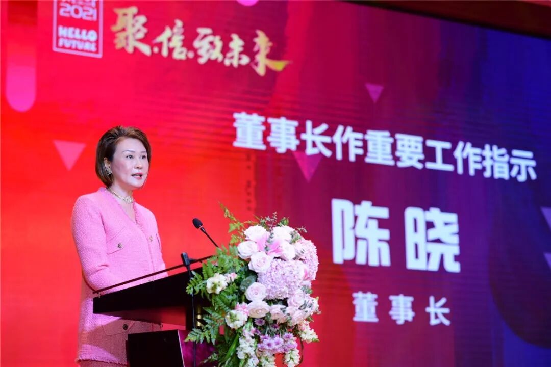 公司董事长兼总经理陈晓女士向大会致辞并就2021年公司营销工作发表重要讲话。