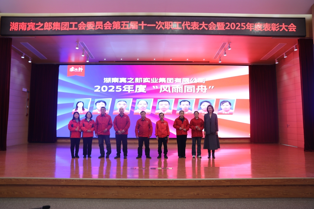 2月3日下午16:00,湖南宾之郎实业集团有限公司工会委员会第五届十一次职工代表大会暨2025年度表彰大会在集团总部顺利召开!集团董事长 总裁陈晓女士,集团党委书记、各中心部门负责人,管理者代表及职工代表齐聚一堂,共同回顾奋斗征程,表彰卓越贡献,擘画发展蓝图。